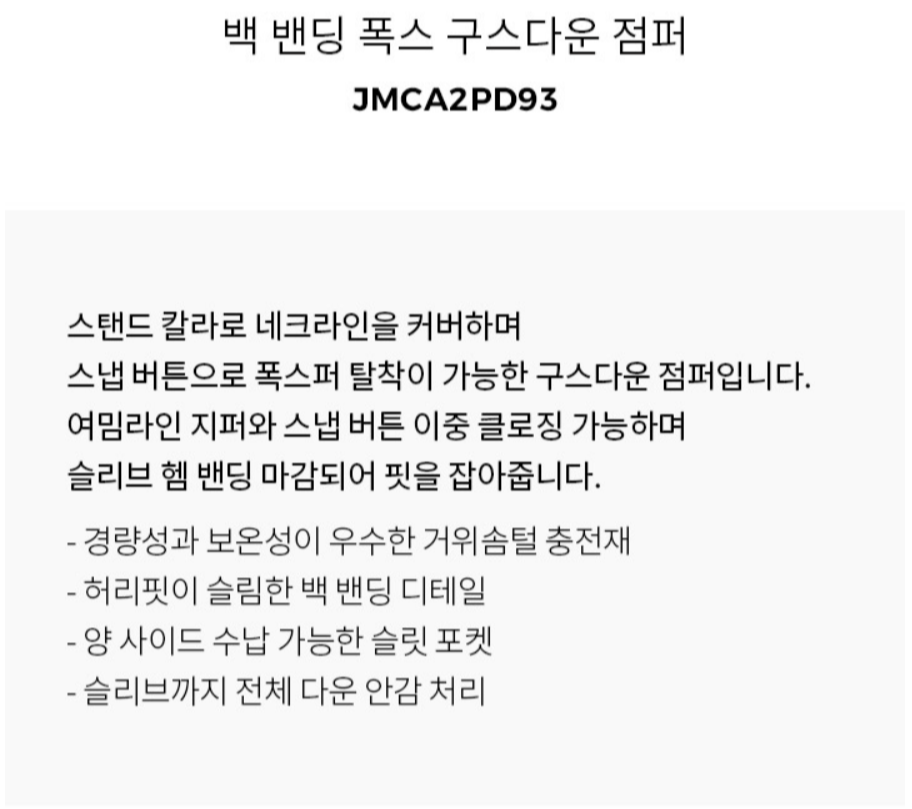 JMCA2PD93 지고트 밴딩 폭스 구스다운 점퍼 : 네이버 통합검색